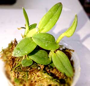 ビバリウムにも入れやすい小型の樹上性ランです。