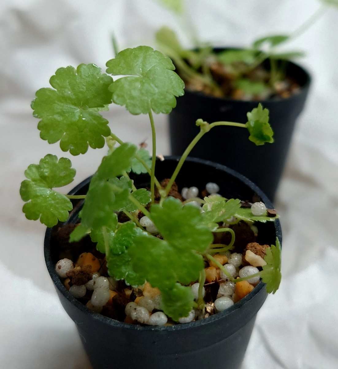 チドメグサ 鹿児島産から小型種を選抜した苗です。両生類親爬虫類のビバリウムや、コケリウムなどテラリウムの中で10ミリ弱の丸い葉が小さな藪を作り出します。