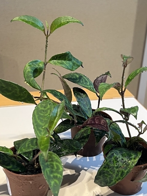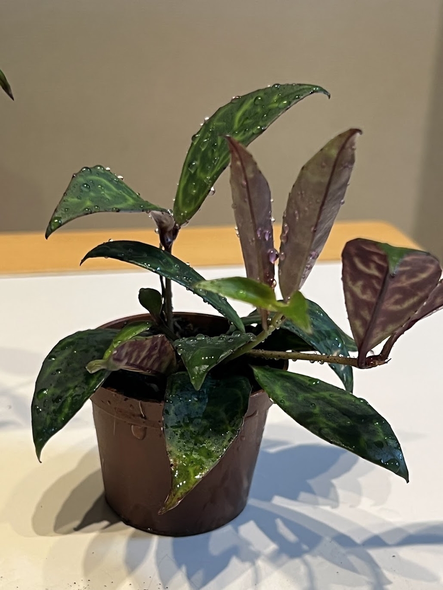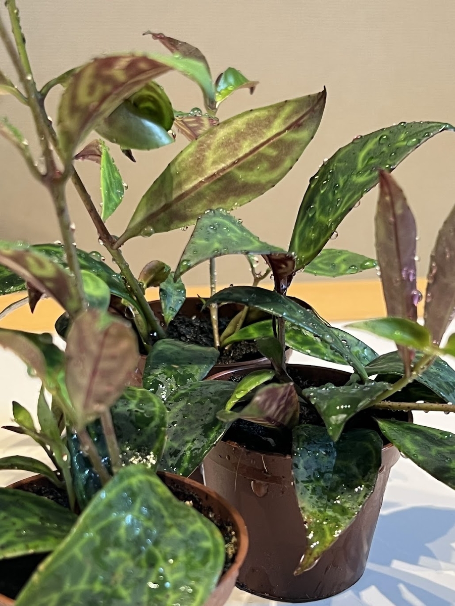 葉表にマーブル状の模様、葉裏は赤紫色という強いコントラストが魅力的。
