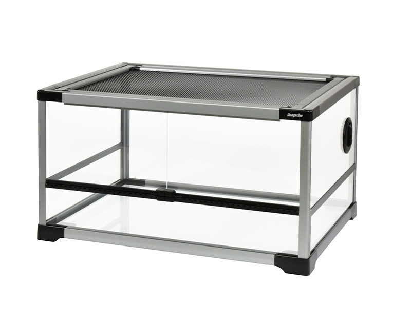 全面強化ガラスに頑丈な金属メッシュ、フレームはアルミ合金を採用しています。スイングドア支柱をケージのフレームと一体化させることで開口部を広く確保しています。