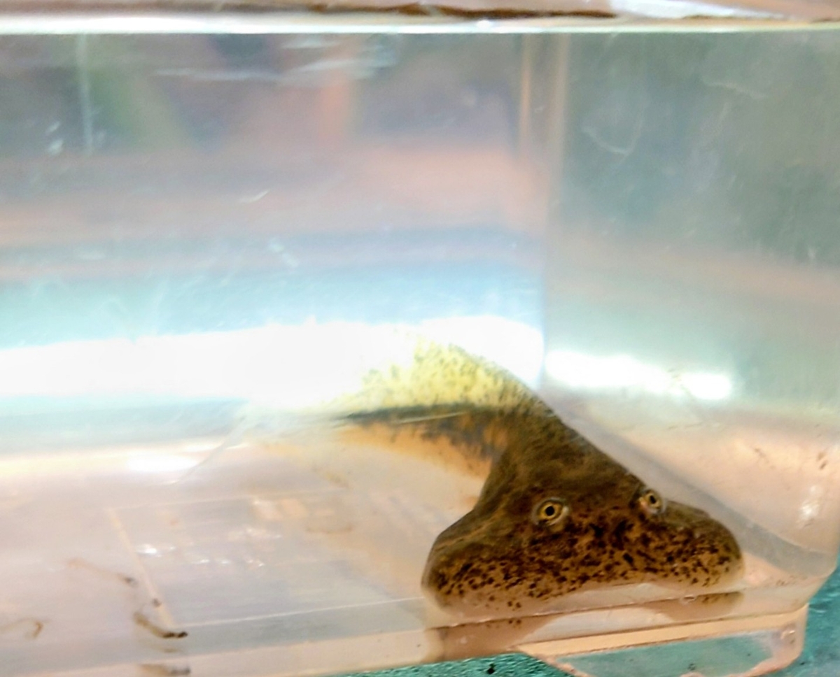 バジェットフロッグのオタマジャクシは、オタマジャクシのうちから、カエルの頭の形に似た形の頭をしています。